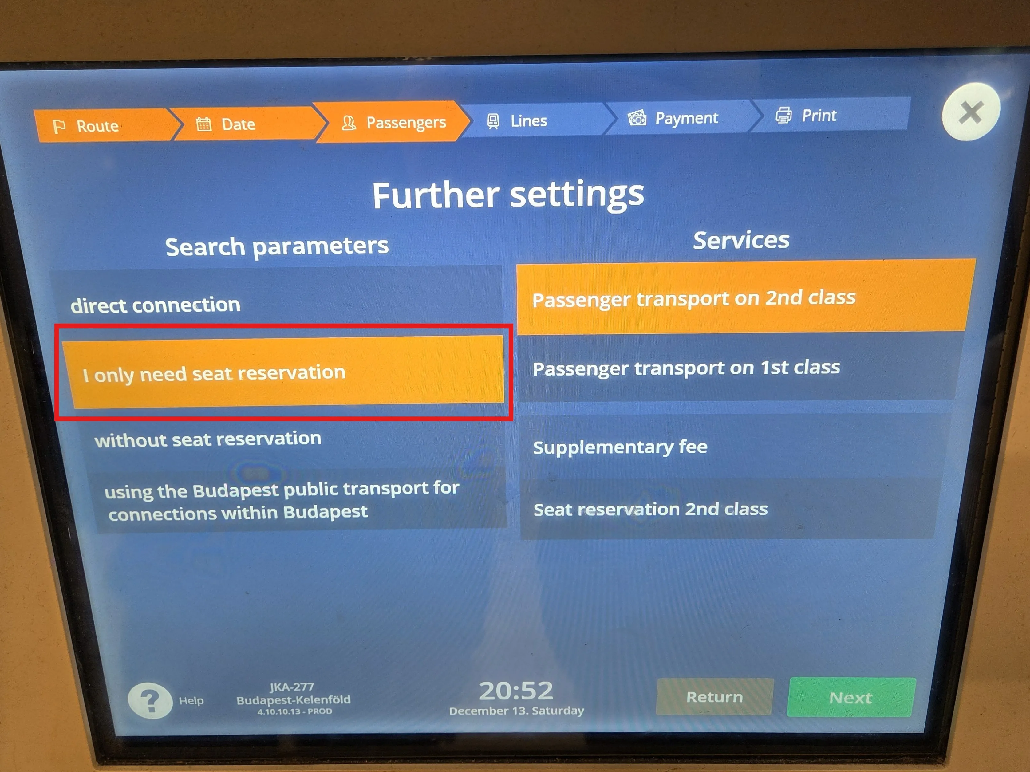 Reservations for MÁV and GySEV trains can be purchased online for 990 HUF. To do this, the option I only need seat reservation must be selected in the connection search.